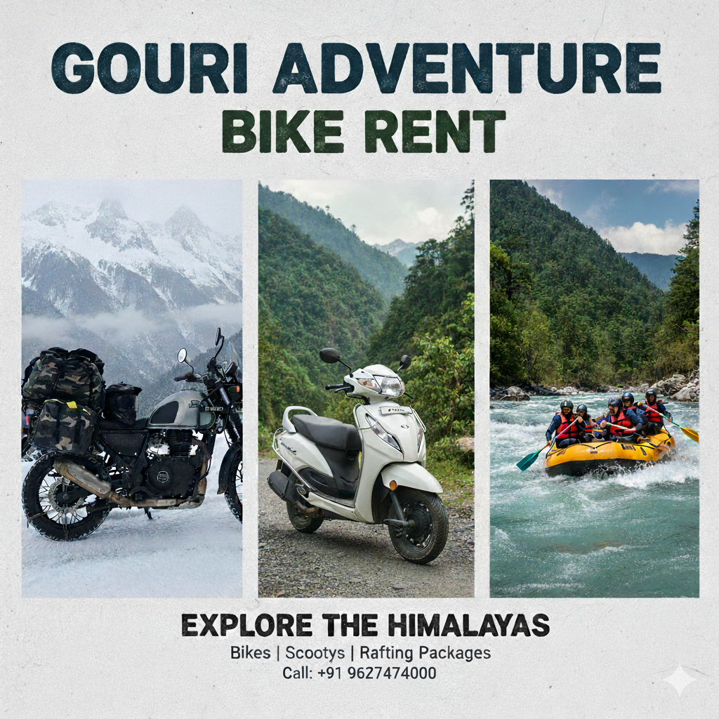 Experience the thrill of Rishikesh with Gouri Adventure, your premier two-wheeler rental agency in Uttarakhand, offering scooter rental services for 12 years! Explore the scenic trails and adventure sports with our reliable and well-maintained bikes. Book now and discover the beauty of this spiritual city. Come, ride, and unwind with us!